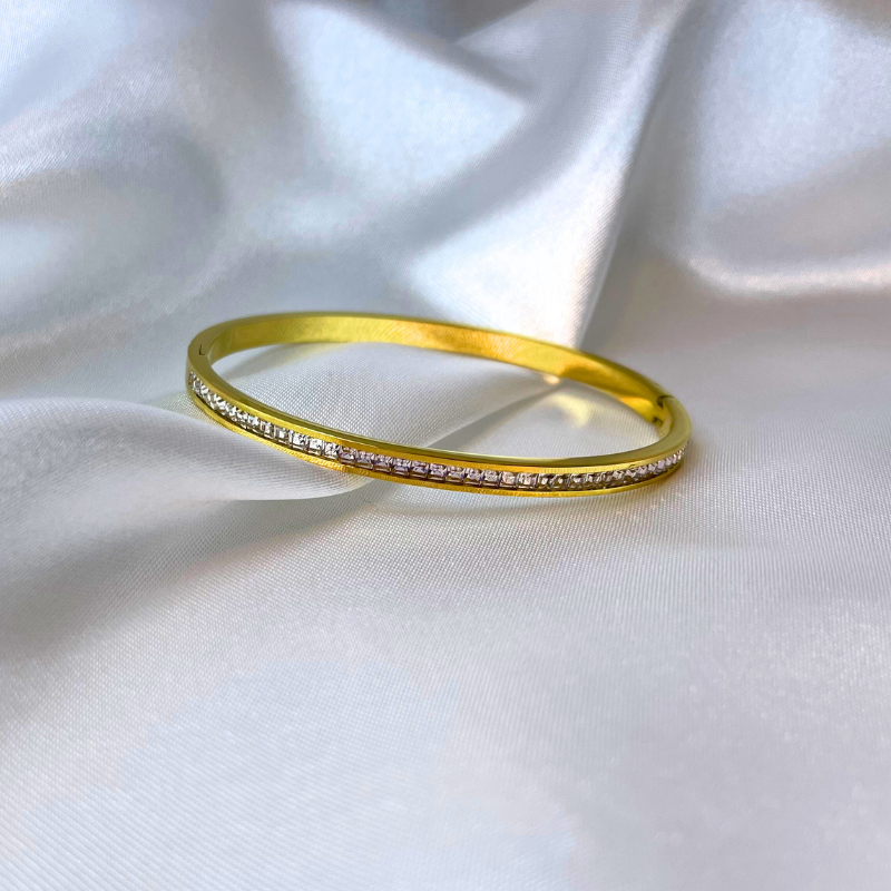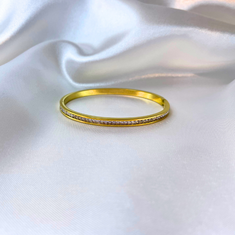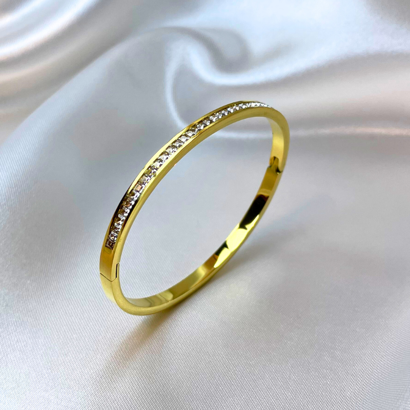 Bracelet Simple lovely en Acier Inoxydable Placage Incruster Zircon Plaqué Or 18k
